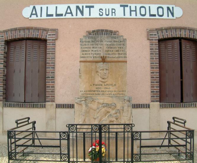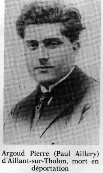 Ailant sur Tholon, monument à la mémoire de Pierre Argoud et des « déportés politiques du canton morts en déportation », inauguré le 17 novembre 1946. |